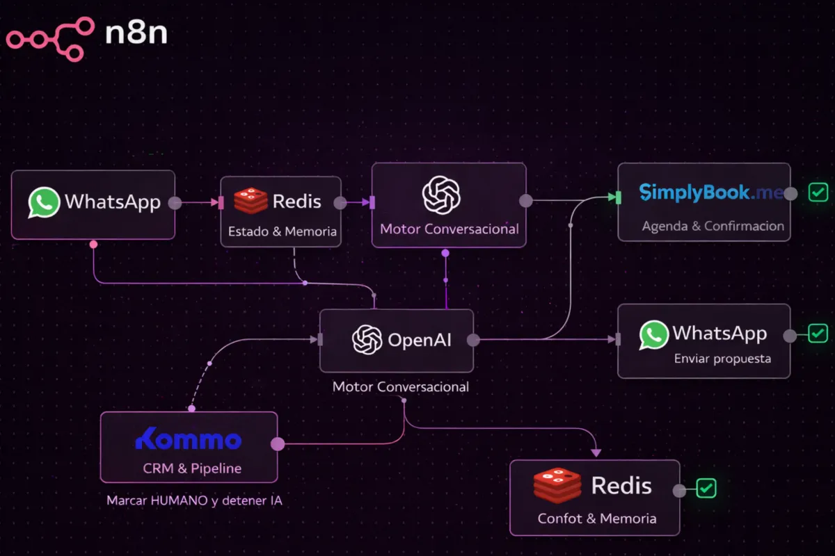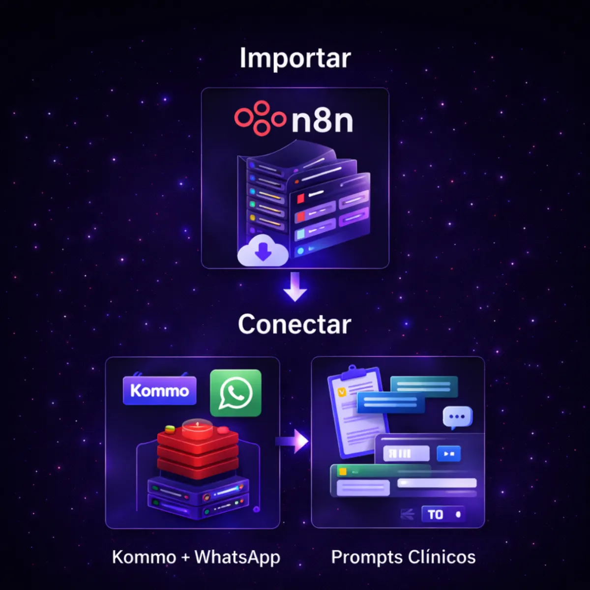 Incluye una infraestructura completa para lanzar un sistema de automatización conversacional para clínicas, ya estructurada y lista para adaptar. Recibes la arquitectura técnica, workflows, lógica operativa, documentación detallada, estructura CRM y el acompañamiento necesario para ayudarte a implementarlo correctamente.